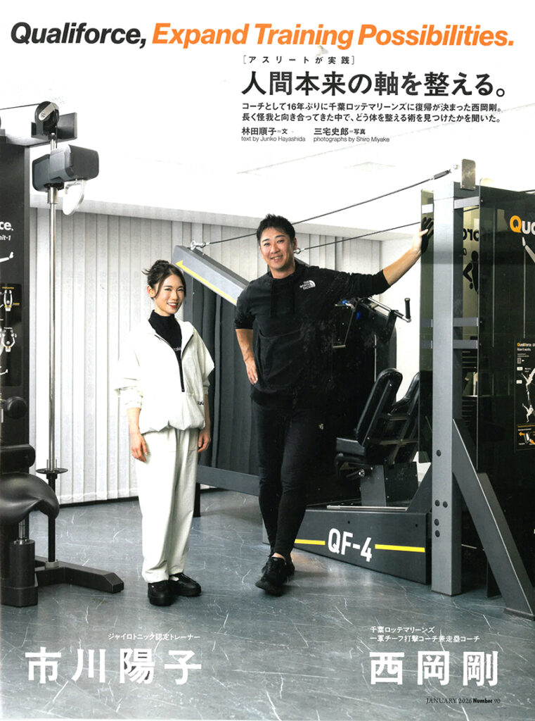 Sports Graphic Number 1134・1135合併号(文藝春秋社)にて、プロ野球千葉ロッテマリーンズ一軍チーフ打撃コーチ兼走塁コーチである西岡剛さんがQualiforce®を使ったトレーニングについてインタビューを受けられ、Qualiforce®についても紹介されました。